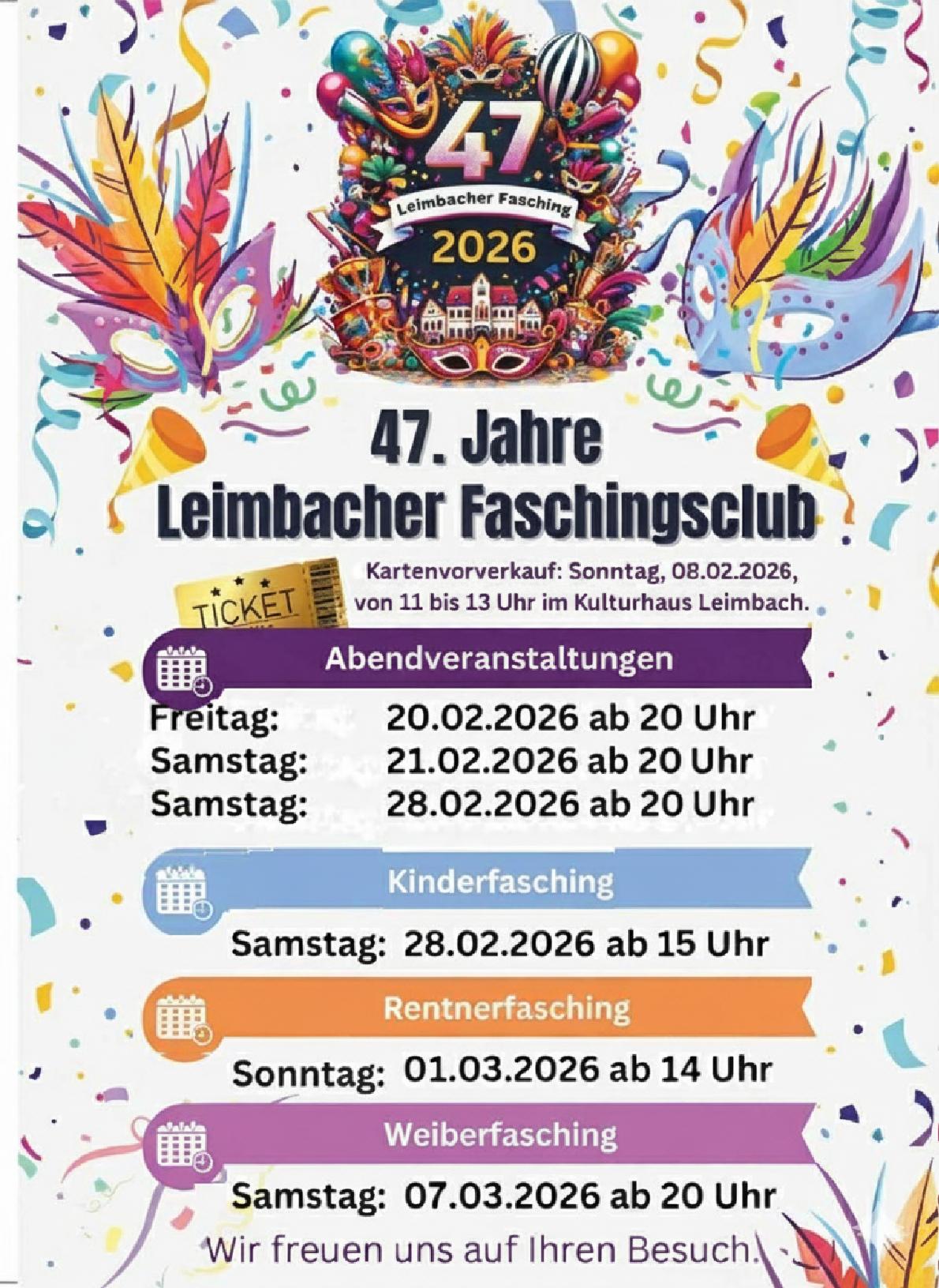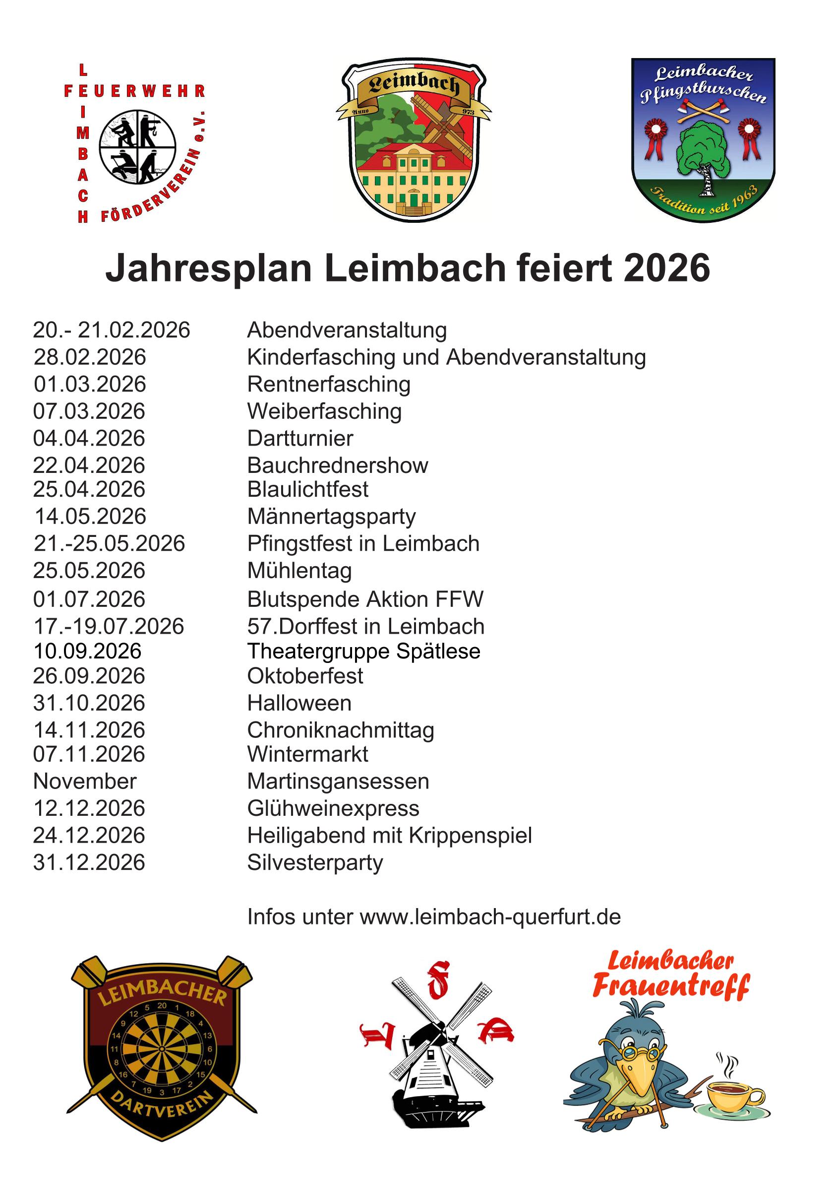 Jahresplan für die Veranstaltungen 2026 in Leimbach